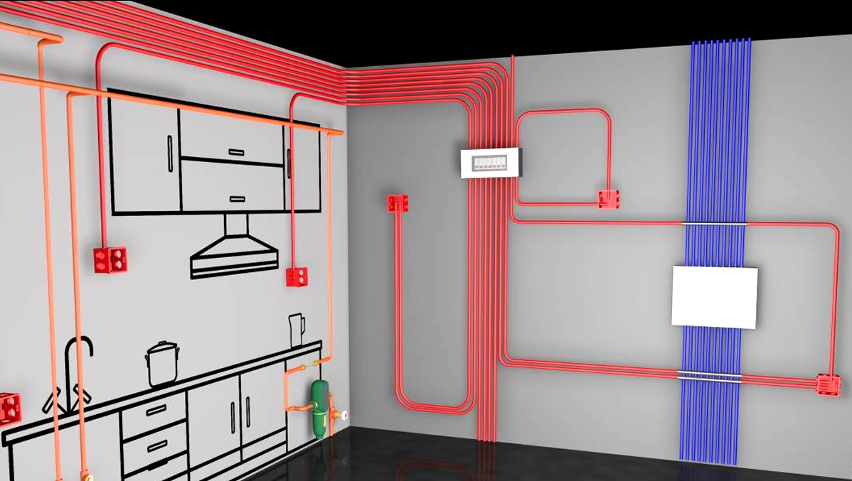 紅色是強(qiáng)電,用電線;藍(lán)色是弱電,用于電話線網(wǎng)絡(luò),不同顏色實(shí)現(xiàn)強(qiáng)弱電線路專業(yè)防護(hù)。