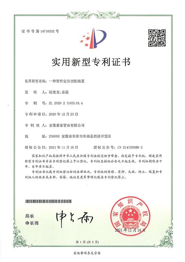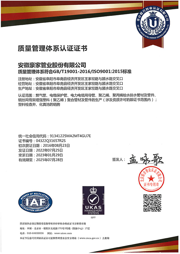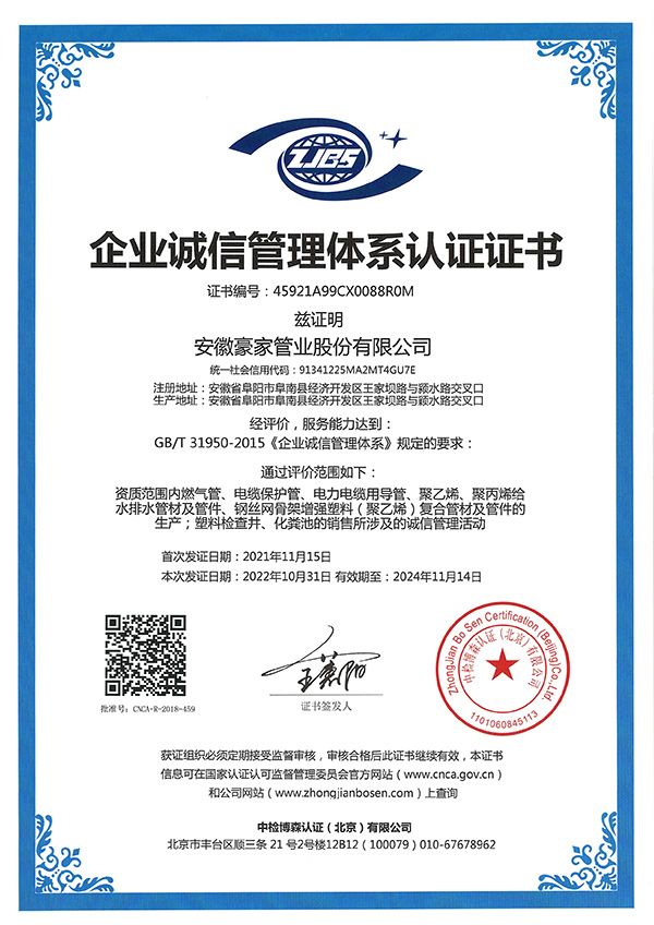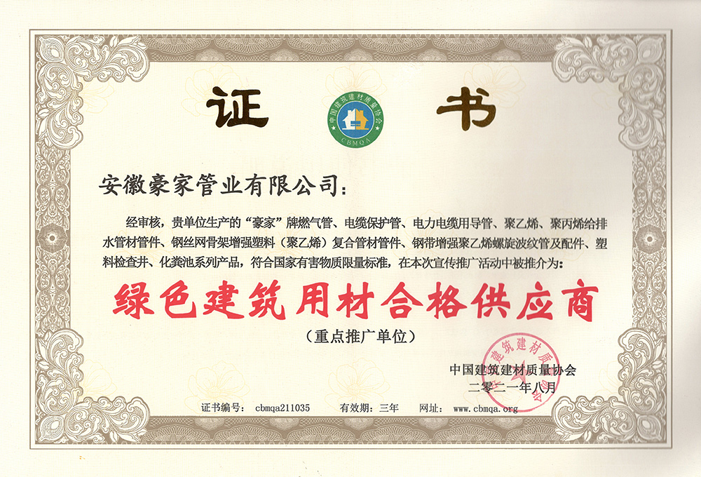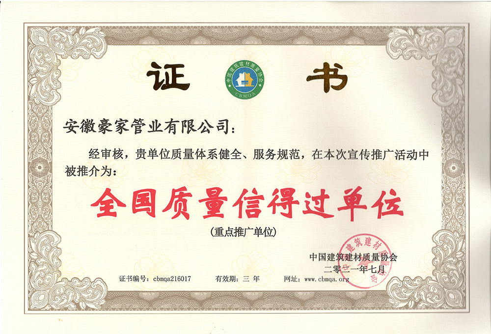 多年來(lái),豪家管業(yè)注重科技研發(fā),秉承“質(zhì)量求生存、信譽(yù)求發(fā)展”發(fā)展理念,產(chǎn)品通過(guò)國(guó)家的檢測(cè)機(jī)構(gòu)檢測(cè),技術(shù)指標(biāo)均高于相關(guān)標(biāo)準(zhǔn),多次參與編寫(xiě)相關(guān)國(guó)家標(biāo)準(zhǔn)、產(chǎn)品圖集、擁有多項(xiàng)發(fā)明和國(guó)家專利,受到行業(yè)和 市場(chǎng)的廣泛認(rèn)可,也斬獲眾多榮譽(yù)。